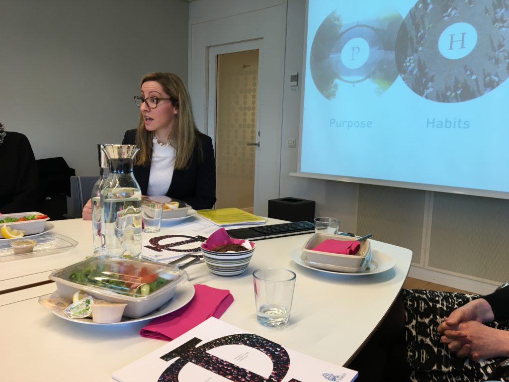 The discussion afterwards led us to the inevitable (for the network) question about a possible gender aspect of the study’s conclusions. Mimmi was careful to point out that motivation is an equally important factor for both men and women and their performance. There are however other studies that seem to suggest that e.g. the banking industry fails to acknowledge women’s basic motivational needs for relatedness and competence which might explain its difficulty to attract and keep female talent. Kim, one of the younger members of the network, pointed out that purpose is extremely important for both young men and women and the industry stands to lose young people both as employees and as clients if it doesn’t shape up.